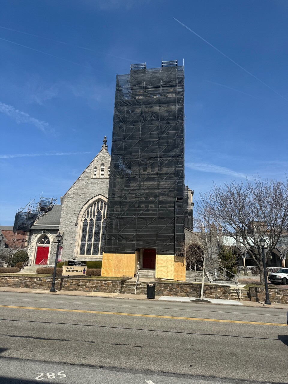This project involved the comprehensive restoration of the bell tower at Wayne Presbyterian Church. Our team addressed structural deterioration, waterproofing failures, and aesthetic degradation while preserving the architectural integrity of the structure.