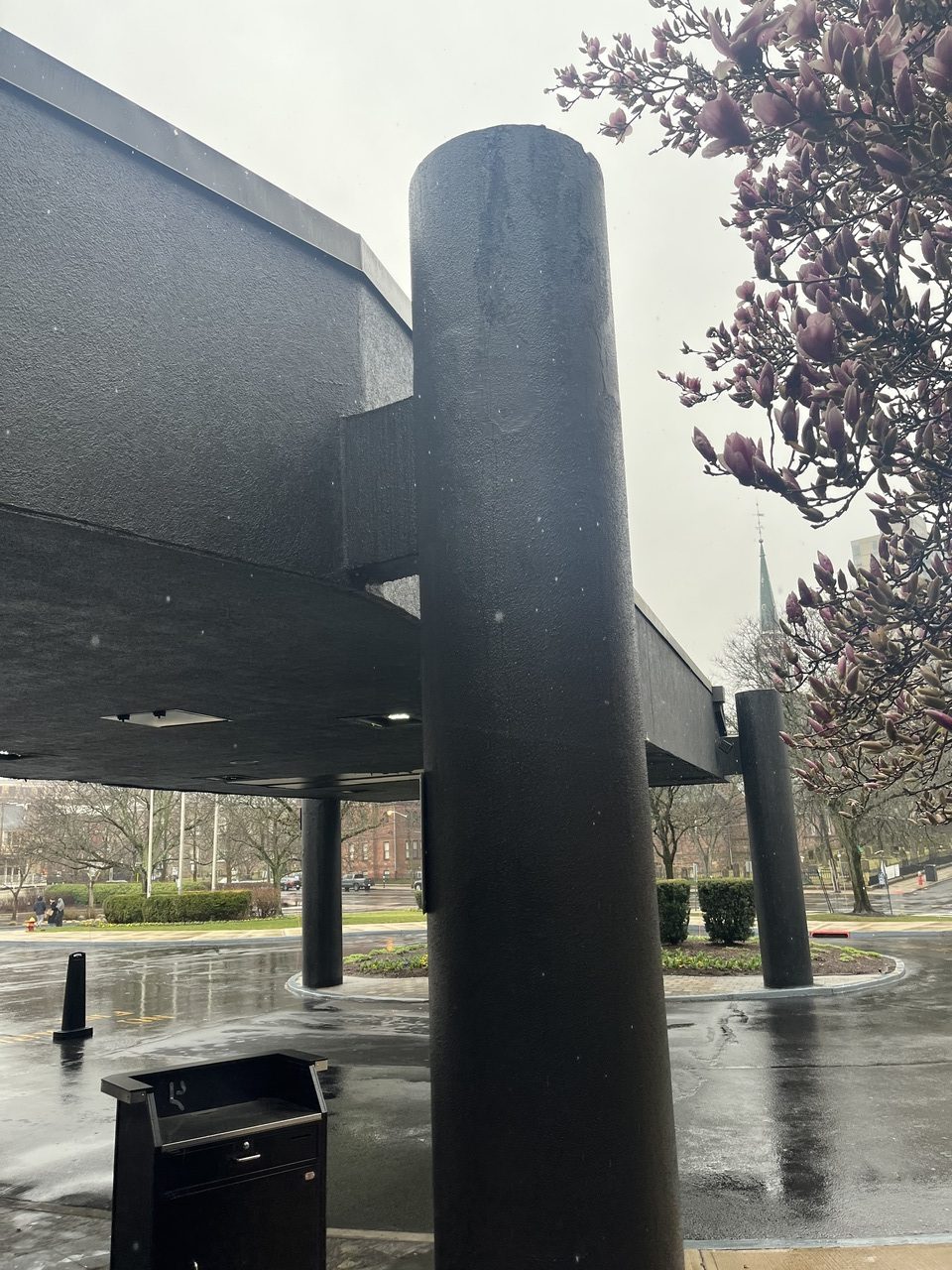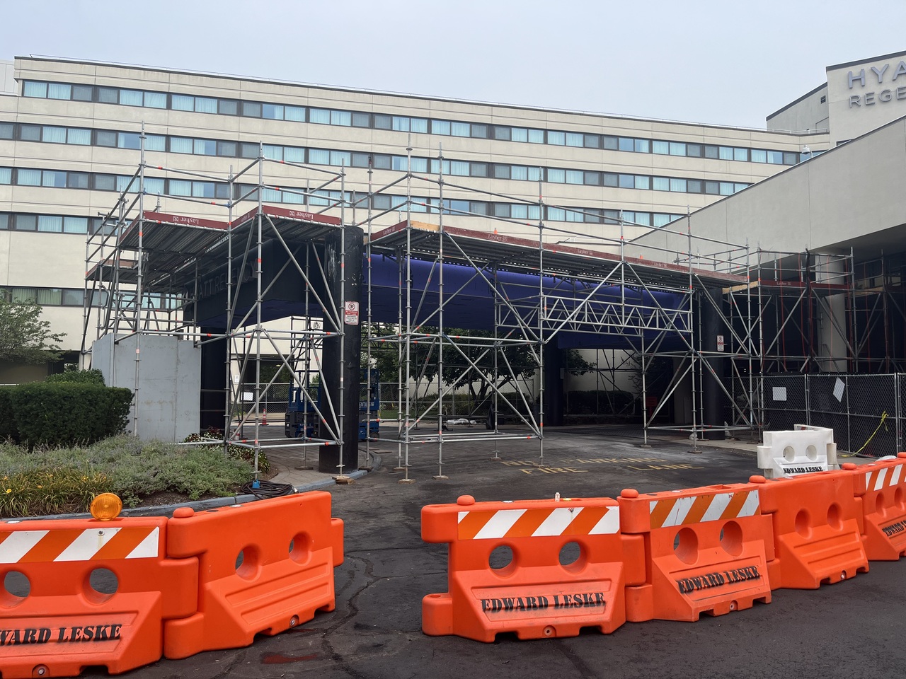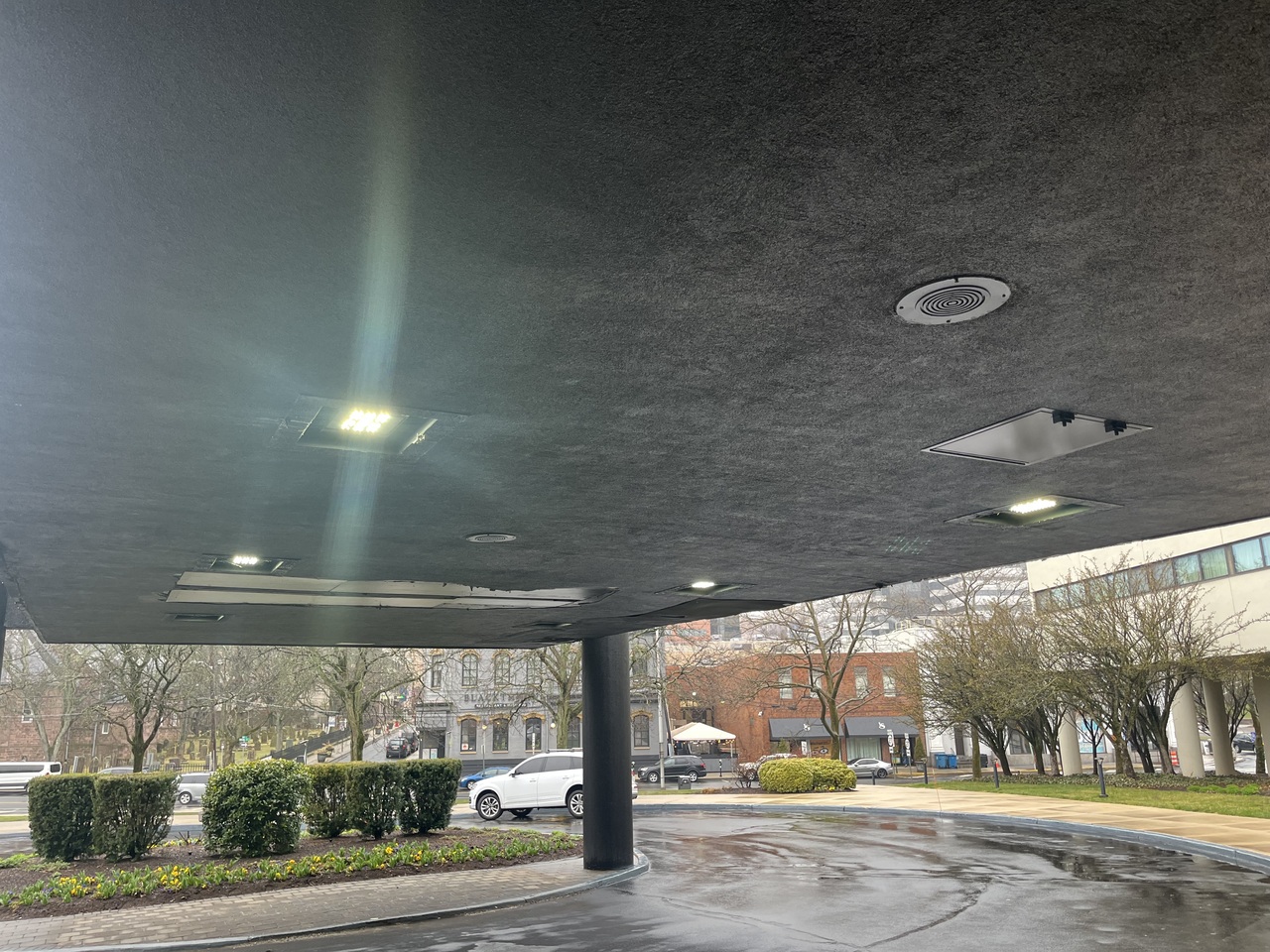 Joseph Dugan, Inc. was contracted to perform EIFS restoration work on the porte cochere canopy at the Hyatt Regency Hotel in New Brunswick, NJ, as part of a broader renovation project led by HSC Builders & Construction Managers for Johnson & Johnson.