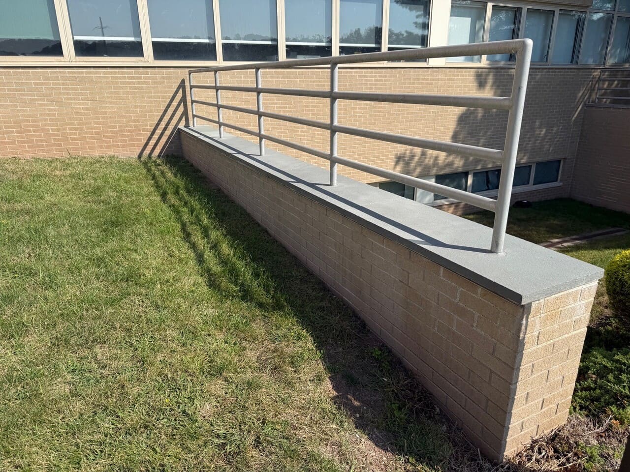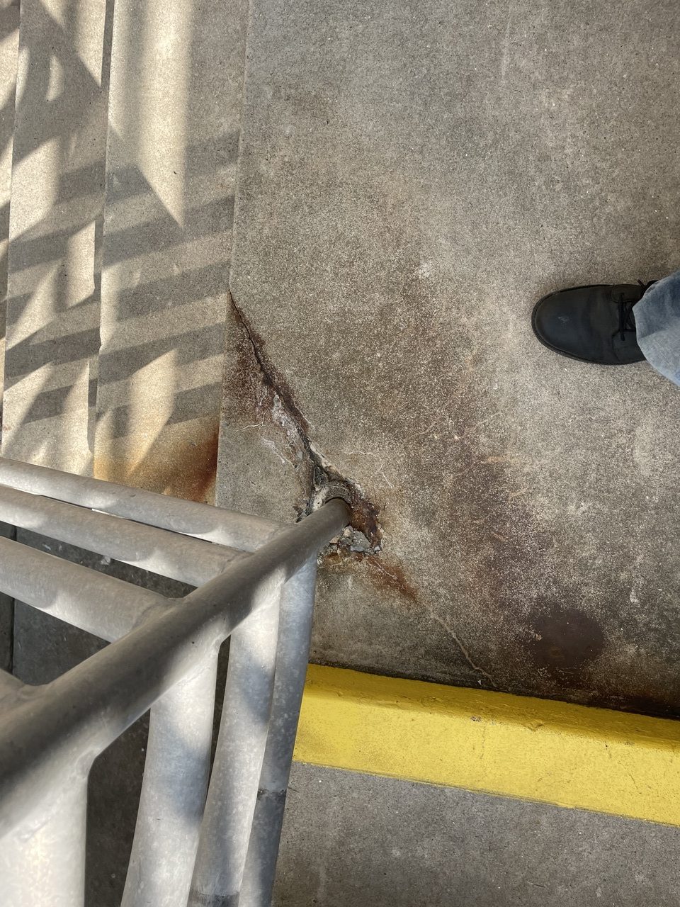 - Reinstallation of railings with new base plates and wedge anchors to prevent future damage.