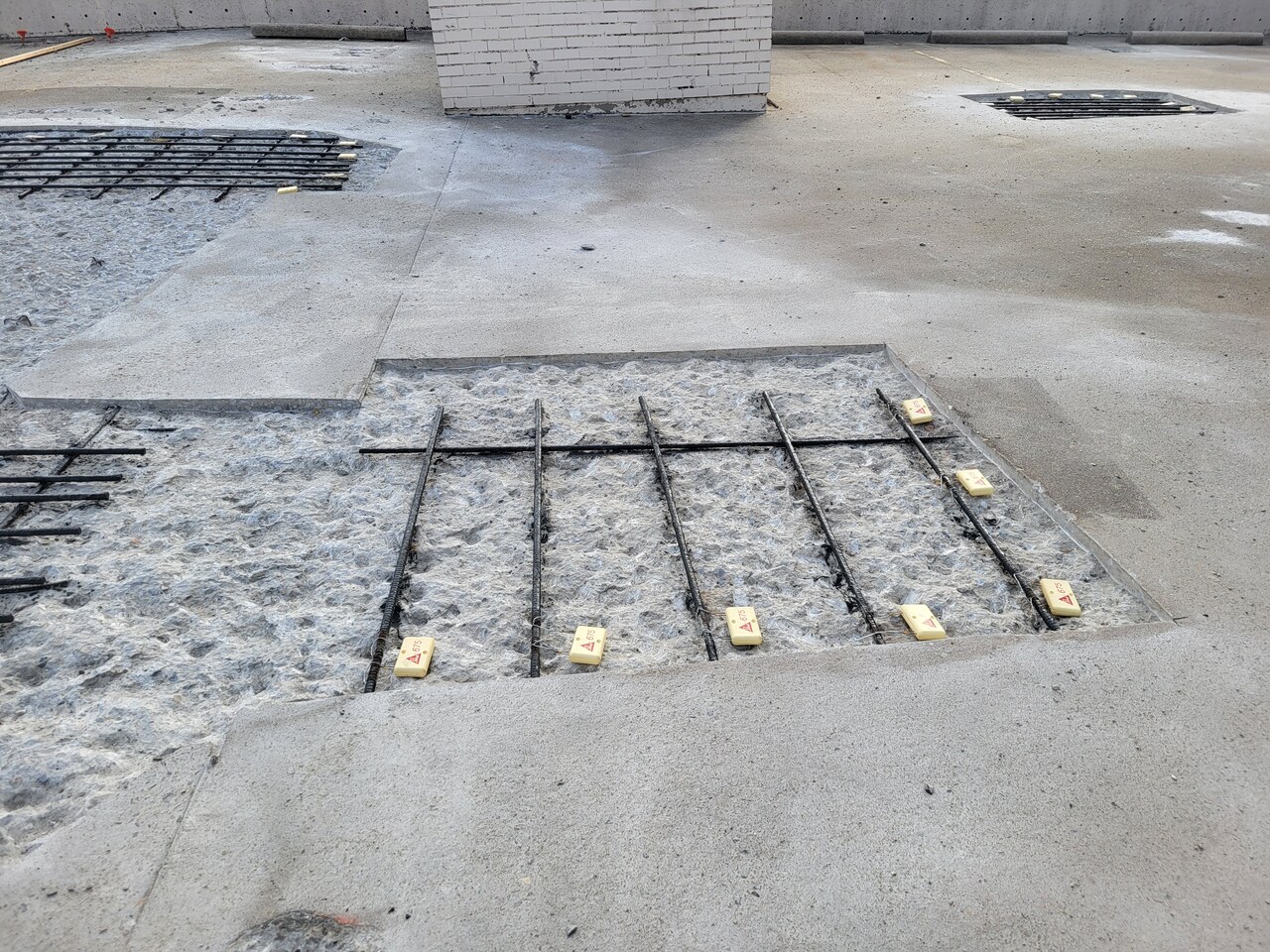 – Surface preparation including abrasive blasting and priming of exposed reinforcing steel.